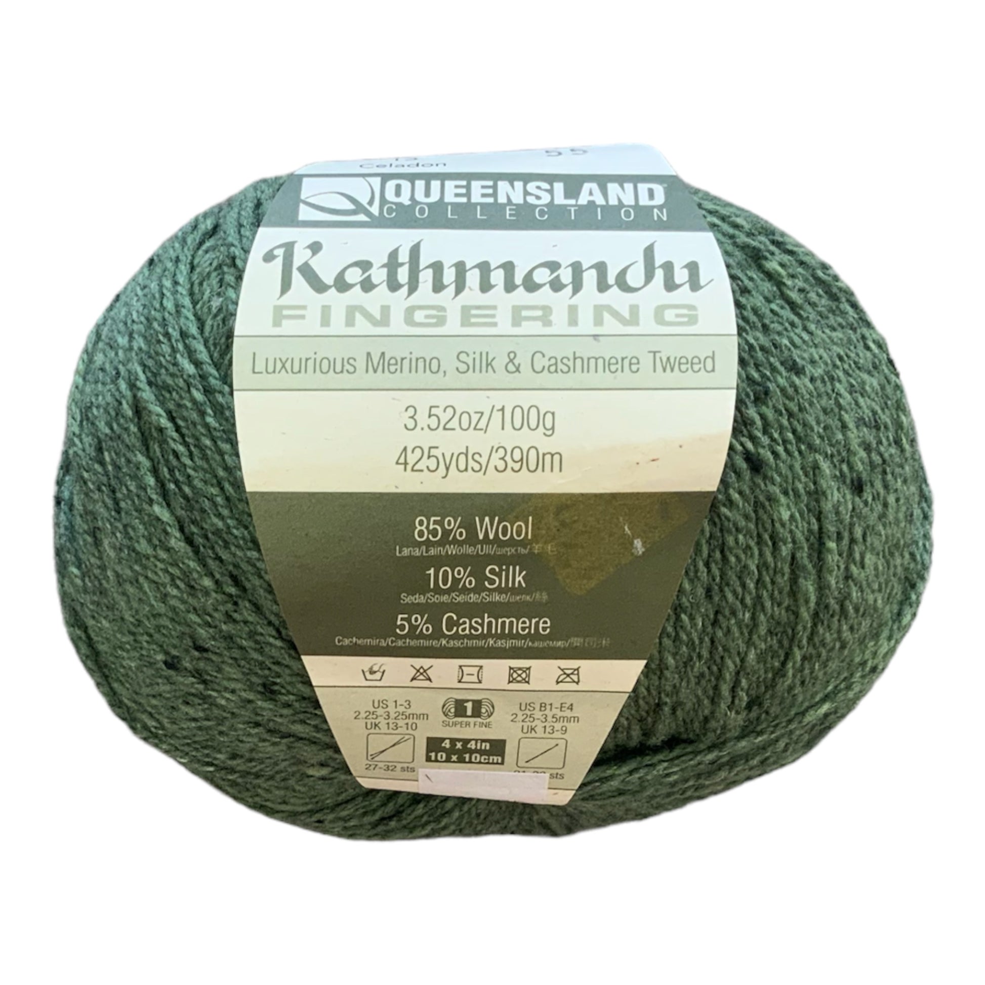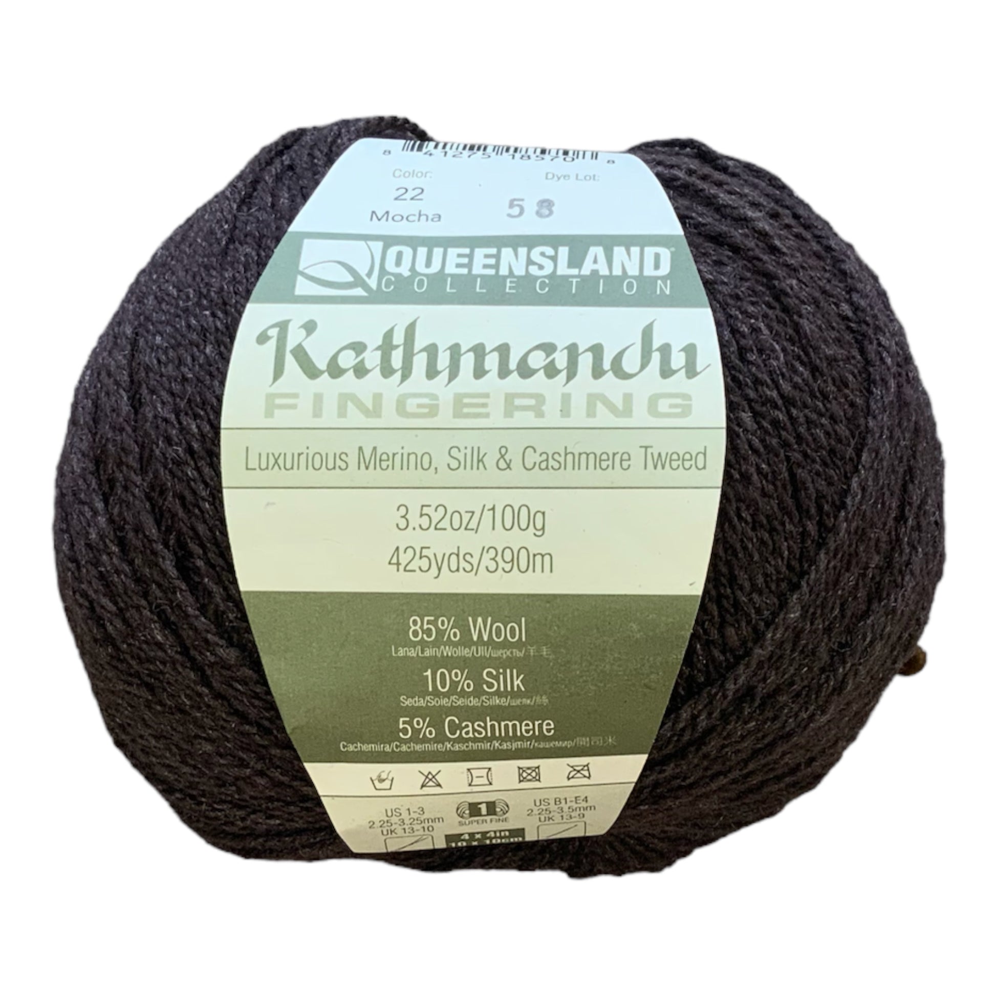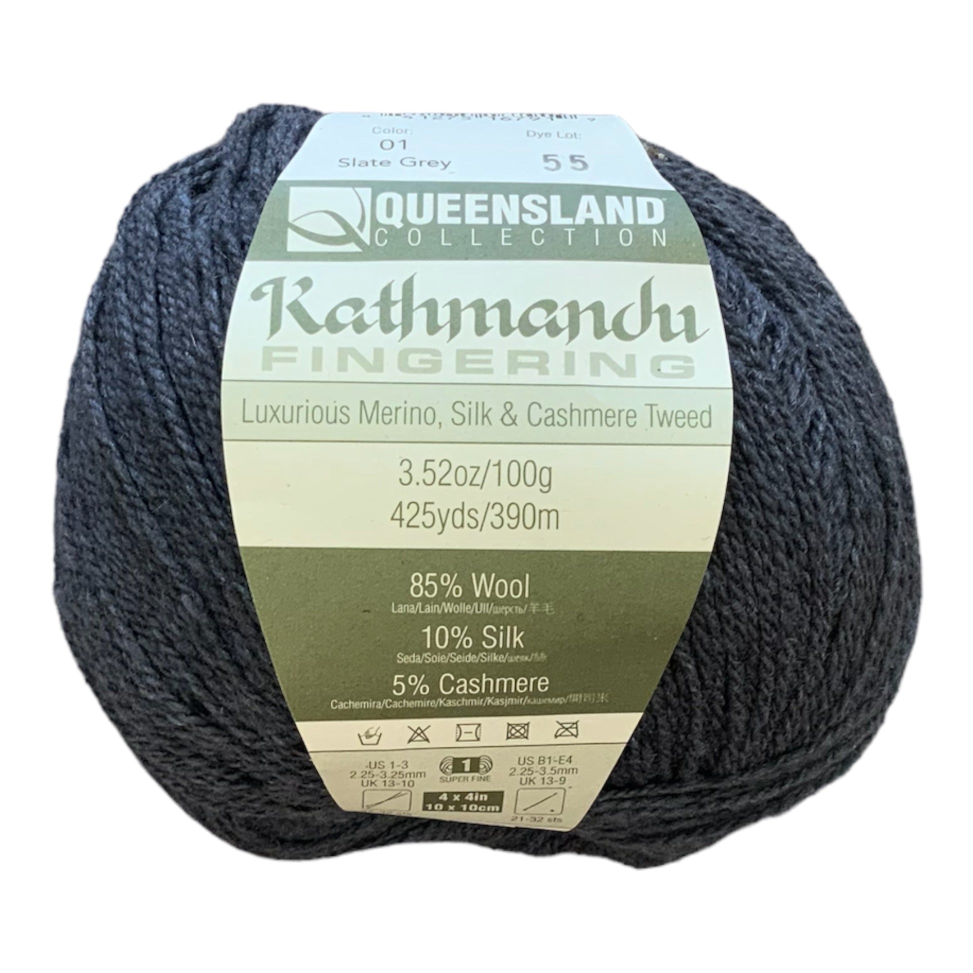 Kathmandu Fingering is the addition the Queensland Kathmandu family we have been waiting for! This beautiful classic tweed is produced in Italy and is comprised of the finest 19.5 micron merino wool from South America, Mulberry Silk from China and Mongolian cashmere. It is mulesing free and prepared under the strictest ethical guidelines. Kathmandu is beautiful in any project from cabled cardigans to stranded colorwork sweaters.